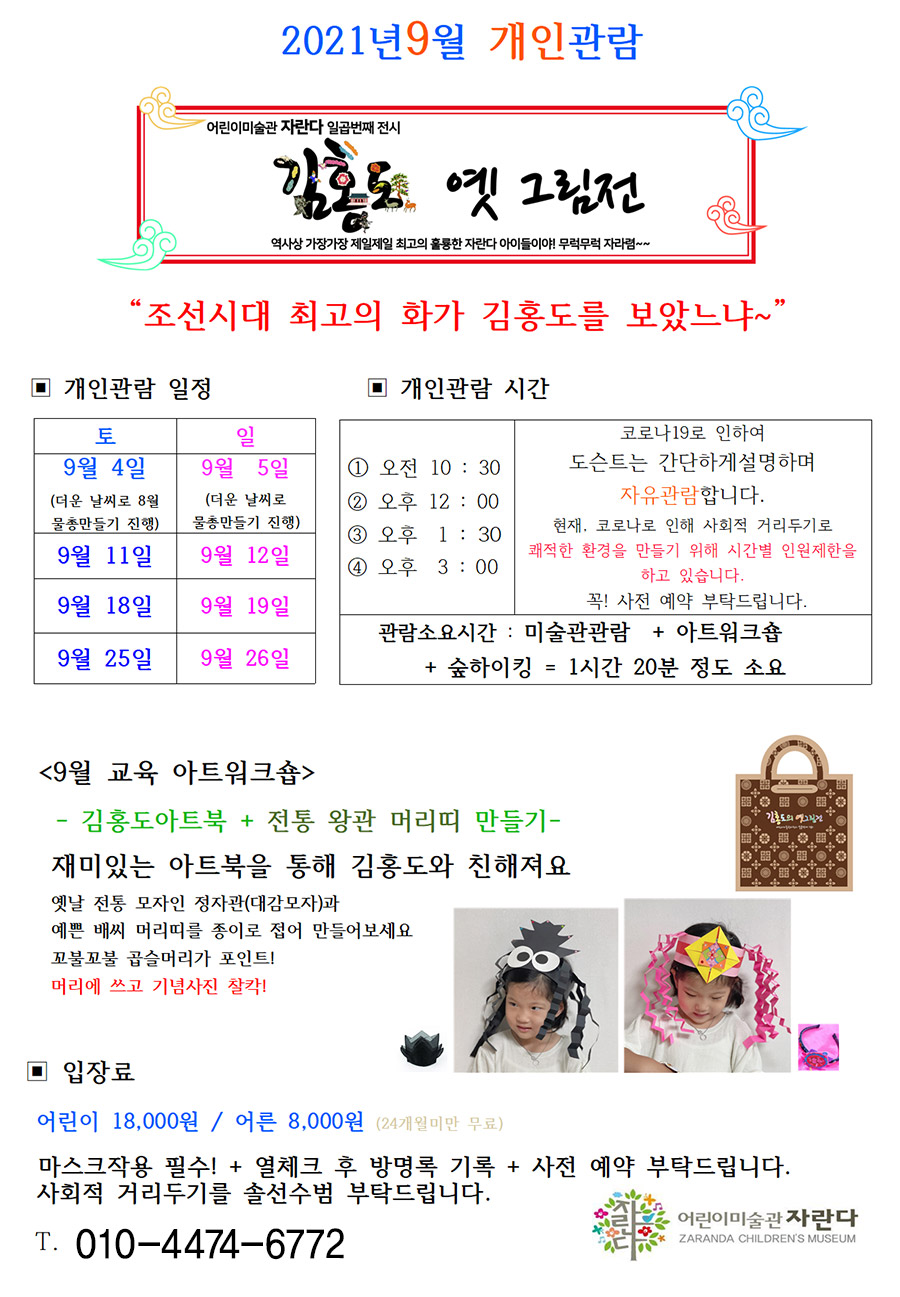 전시일정 | 9월 개인관람 안내 페이지 정보 작성자 자란다 작성일21-08-26 22:52 조회10,421회 댓글0건 관련링크 이전글 다음글 목록 본문 많은 관심 부탁드립니다. 댓글 등록된 댓글이 없습니다. 이전글 다음글 목록